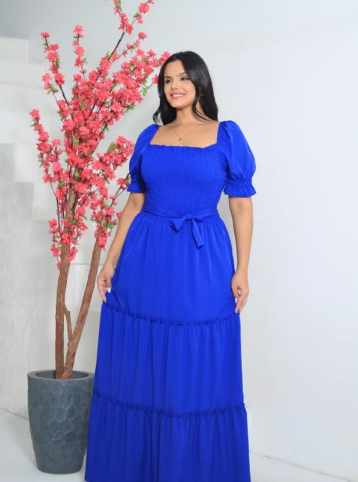 Esse vestido é perfeito para quem busca modéstia, elegância e conforto no dia a dia ou em momentos especiais. O modelo tem manga bufante, forro interno e elastex na cintura e busto, o que ajuda a modelar o corpo sem apertar, se ajustando a diferentes tipos de corpo. Confeccionado em tecido crepinho, é leve, fluido e confortável para usar em qualquer estação.